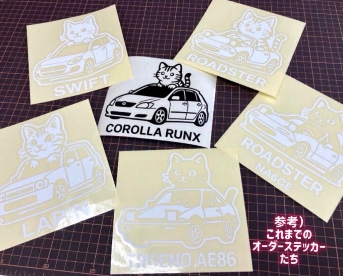 猫と車のコラボレーション!かわいくてかっこいいオリジナルデザインのカッティングステッカーです。