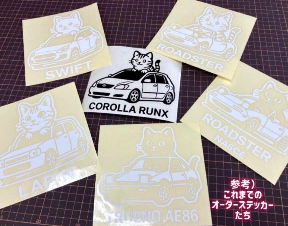 猫と車のコラボレーション!かわいくてかっこいいオリジナルデザインのカッティングステッカーです。