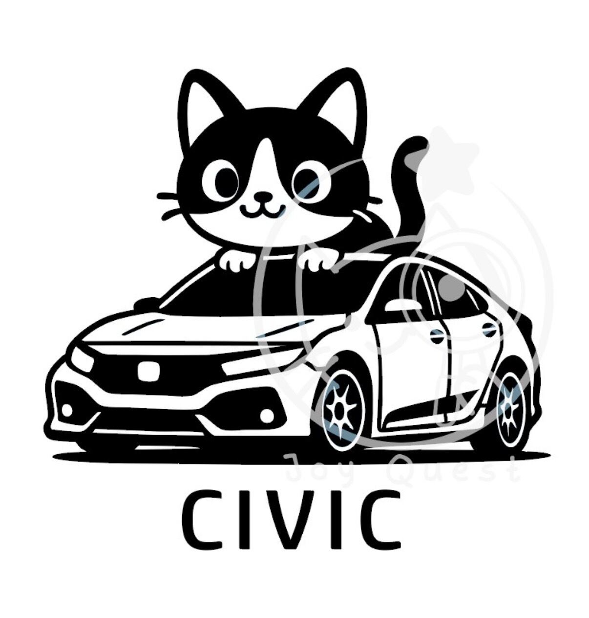 猫と車のコラボレーション!かわいくてかっこいいオリジナルデザインのカッティングステッカーです。